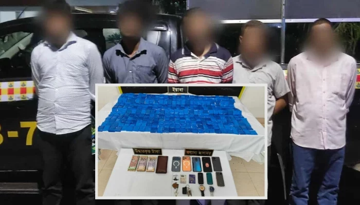 আটক পাঁচ মাদক কারবারিরা হলেন— লক্ষ্মীপুর জেলার লক্ষীপুর সদর থানার পাটোয়ারী বাড়ির আব্দুল মতিনের ছেলে মো. আব্দুল্লাহ আল মামুন (৪১), কুমিল্লা জেলার মুরাদনগর থানার রসুলপুর গ্রামের ফিরোজের ছেলে মো. মাঈন উদ্দিন (৩০), পটিয়া পৌরসভার হাবিবুর পাড়ার আবদুল হামিদের ছেলে মো. রাশেদুল আলম (৩৮), একই উপজেলার কাগজীপাড়া আল্লাই এলাকার সিদ্দিক আহমদের ছেরে মো. জসিম উদ্দিন (৪১) ও জামালপুর জেলার সরিষাবাড়ী থানার আবদুস সামাদ তরফদারের ছেলে মো. জুনায়েদ তানভীর তরফদার (২৯)।