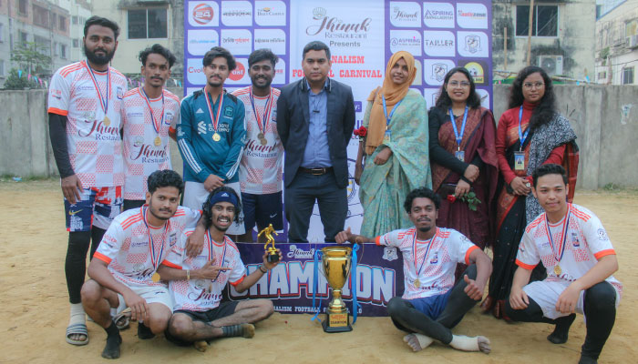 ফুটবল কার্নিভালের চ্যাম্পিয়ন এলিট গ্ল্যাডিয়েটরস দলের হাতে ট্রফি তুলে দেন সাংবাদিকতা ও গণমাধ্যম অধ্যয়ন বিভাগের চেয়ারম্যান দিলরুবা আক্তার। রানার্সআপ ট্রাইমেস্টার টাইটান্স দলের হাতে ট্রফি তুলে দেন বিভাগের সিনিয়র লেকচারার ও স্পোর্টস ফোরামের কোঅর্ডিনেটর প্রশান্ত কুমার শীল।