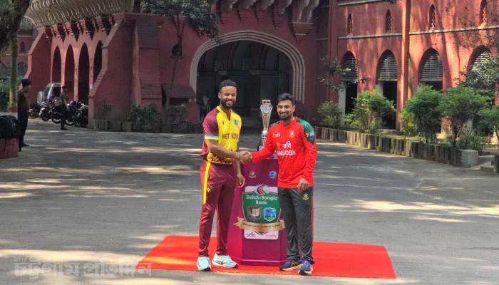 এর আগে রোববার দুপুরে সিআরবির শতবর্ষী রেলওয়ে ভবনের সামনে ট্রফি উন্মোচন করা হয়। বাংলাদেশ অধিনায়ক লিটন দাস ও ওয়েস্ট ইন্ডিজ অধিনায়ক শাই হোপ ট্রফিটি যৌথভাবে উন্মোচন করেন।