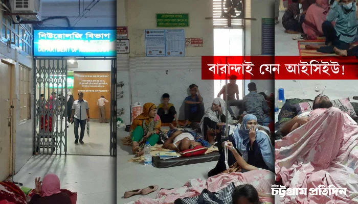 চট্টগ্রাম মেডিকেলের ১৮ নম্বর নিউরোলোজি ওয়ার্ডে বেড সংকট এখন প্রকট। প্রায় রোগীদের লিফটের পাশে, করিডরে বা বারান্দায় রাখার মতো পরিস্থিতি তৈরি হয়। রোগীদের মাল্টিফ্যাকটরিয়াল সমস্যা দেখা দেয়। অন্য ওয়ার্ডের সঙ্গে কোলাবোরেট করতে হয়।