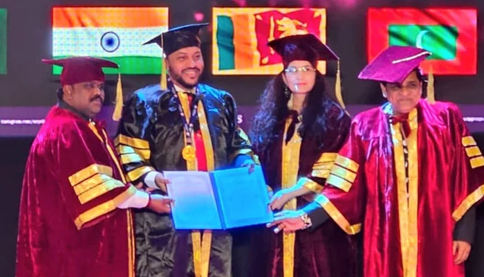 শুক্রবার (১৭ অক্টোবর) শ্রীলংকার রাজধানী কলম্বোর বিখ্যাত বিএমআইসিএইচ (বিএমআইসিএইচ) হলে আয়োজিত এক বিশেষ সমাবর্তন অনুষ্ঠানে বিশ্ববিদ্যালয় কর্তৃপক্ষ আনুষ্ঠানিকভাবে তার হাতে এই ডিগ্রি তুলে দেন। অনুষ্ঠানে উপস্থিত ছিলেন বিশ্ববিদ্যালয়ের শীর্ষ কর্মকর্তারা, আন্তর্জাতিক শিক্ষাবিদ ও বিভিন্ন দেশের প্রতিনিধি।