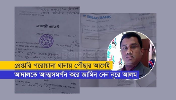 টাকা না পেয়ে ইকবাল ২১ নভেম্বর আলমকে উকিল নোটিশ প্রেরণ করেন। পরবর্তীতে ১৫ ডিসেম্বর ইকবাল চিফ মেট্রোপলিটন আদালতে মামলা দায়ের করেন। আদালত চলতি বছরের ১৪ ফেব্রুয়ারি মামলার গ্রেপ্তারি পরোয়ানা জারি করেন। কিন্তু খবর পেয়ে গ্রেপ্তারি পরোয়ানা থানায় পৌঁছানোর পূর্বেই ১৫ ফেব্রুয়ারি আদালতে আত্মসমর্পণ করে জামিন নেন নূরে আলম।